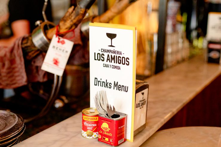 Los Amigos is een authentieke champañeria en tapasbar waar je kunt genieten van klassieke Spaanse gerechten en hapjes. Denk aan jamón ibérico met manchego, gambas al ajillo, patatas bravas, croquetas, dorade en diverse vegetarische opties zoals tortilla de patatas en gegrilde artesjok met romesco. De drankenkaart biedt een selectie Spaanse cava’s, wijnen, bieren en cocktails die perfect passen bij de smaken van de tapas.