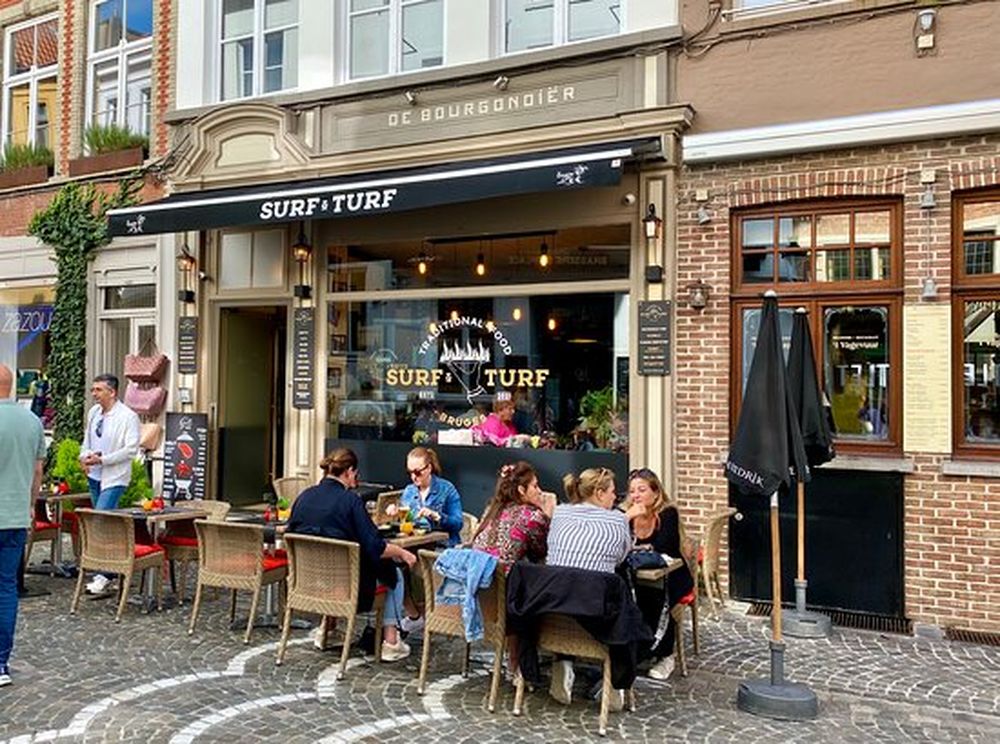 Bij Surf & Turf Brugge ervaar je de perfecte mix van traditionele smaken, een warme sfeer en gastvrije service. Gelegen in het historische centrum van Brugge, serveert Surf & Turf Brugge heerlijke klassiekers met een moderne toets. Of je nu komt voor een gezellig diner met vrienden, een romantisch avondje uit of een etentje met familie, ze heten je van harte welkom!